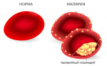 При инфицировании в крови сразу же появляется анемия, связанная с разрушением эритроцитов (в них поселяются малярийные плазмодии):